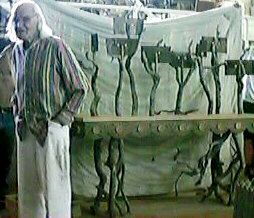 us to his junk sculpture "Musical scales" which was posted in the corridor.